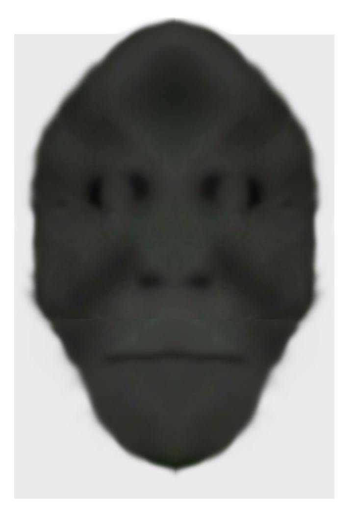 Even though in the still capture the Bigfoot was looking through the needles of a pine tree, both of the eyes, the nose, and the mouth are apparent after the filter has been applied.